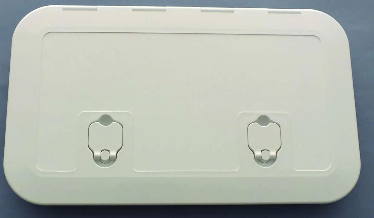 Inspektionsluken aus weißem Kunststoff für Gaskästen, Stauräume, wasserdichte Räume, etc. Mit Drehriegeln zum seefesten Verschließen.