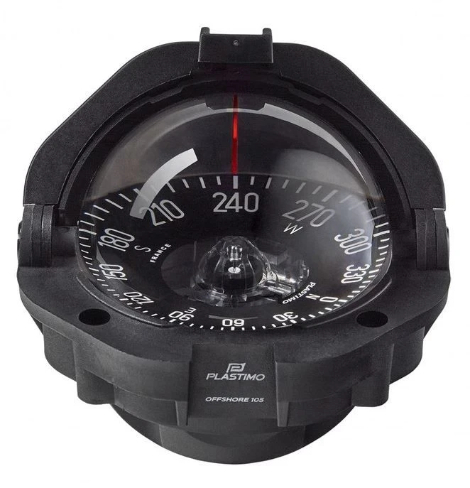 Entwickelt für Motorboote von 5 bis 9 Meter. Kompassrose: 5°-Einteilung, scheinbarer Durchmesser 91 mm. Kurswiederholung alle 30°. Einzigartige Abdeckung: einklappbare Schutzhaube mit 3 Schiebeelementen. Einbau: Wird serienmässig als Einbaukompass geliefert. Kann auf Haltebügel aufgesetzt werde (Haltebügel als Zubehör erhältlich)* Enthält Haltebügel und Schrauben. Bestellen Sie den Kompass zum Einbau und den entsprechenden Haltebügel. Widerstand gegen Vibrationen: speziell gedämpftes Rosensystem 1 Steuerstrich. Kompensation: Serienmässig geliefert Beleuchtung 12 V : 2 Glühbirnen bei flacher Rose. – 5 Jahre Garantie