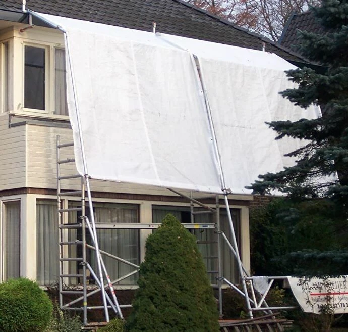 Aus Niederdruckpolyethylen, beidseitig beschichtet. UV-stabilisiert, sehr hohe Reißfestigkeit, bis ca. 110 kp. Gute Lichtdurchlässigkeit , rundherum Öse im Abstand von 100 cm.