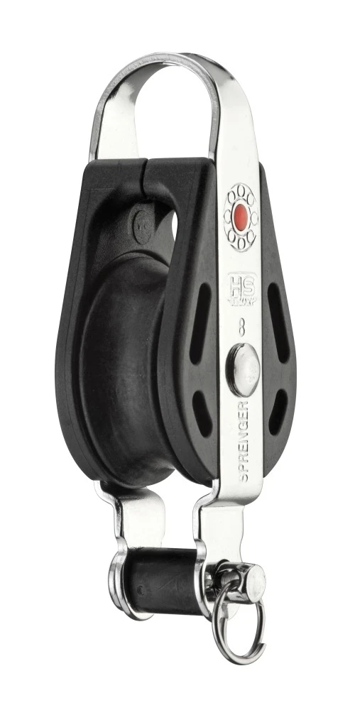 – leichtlaufendes Kugellager – Bruchlast: 600 kg – Arbeitslast: 150 kg – für max. 8 mm Tauwerk