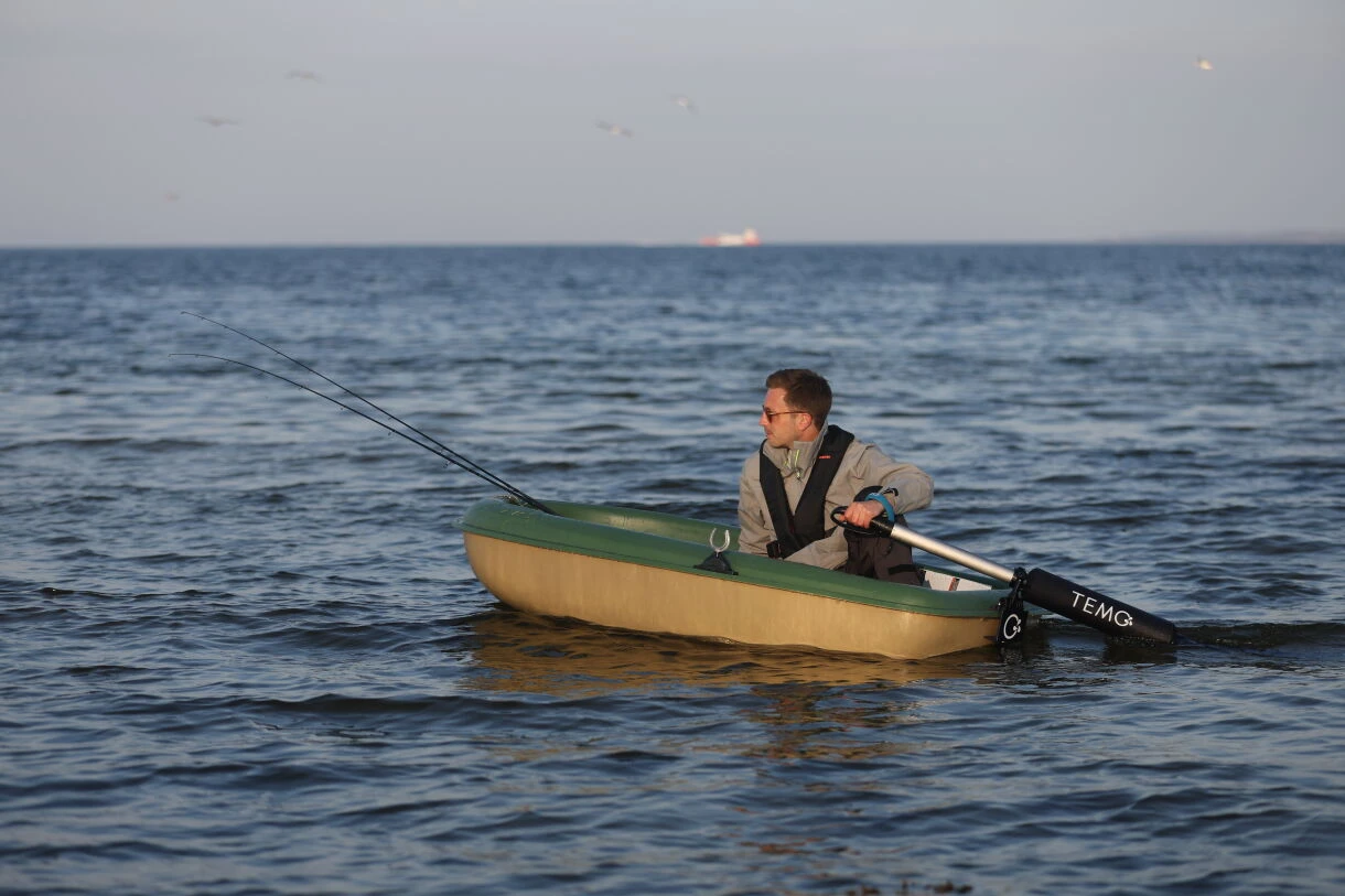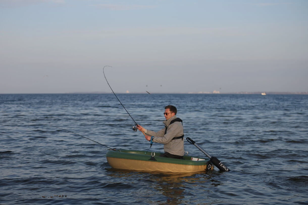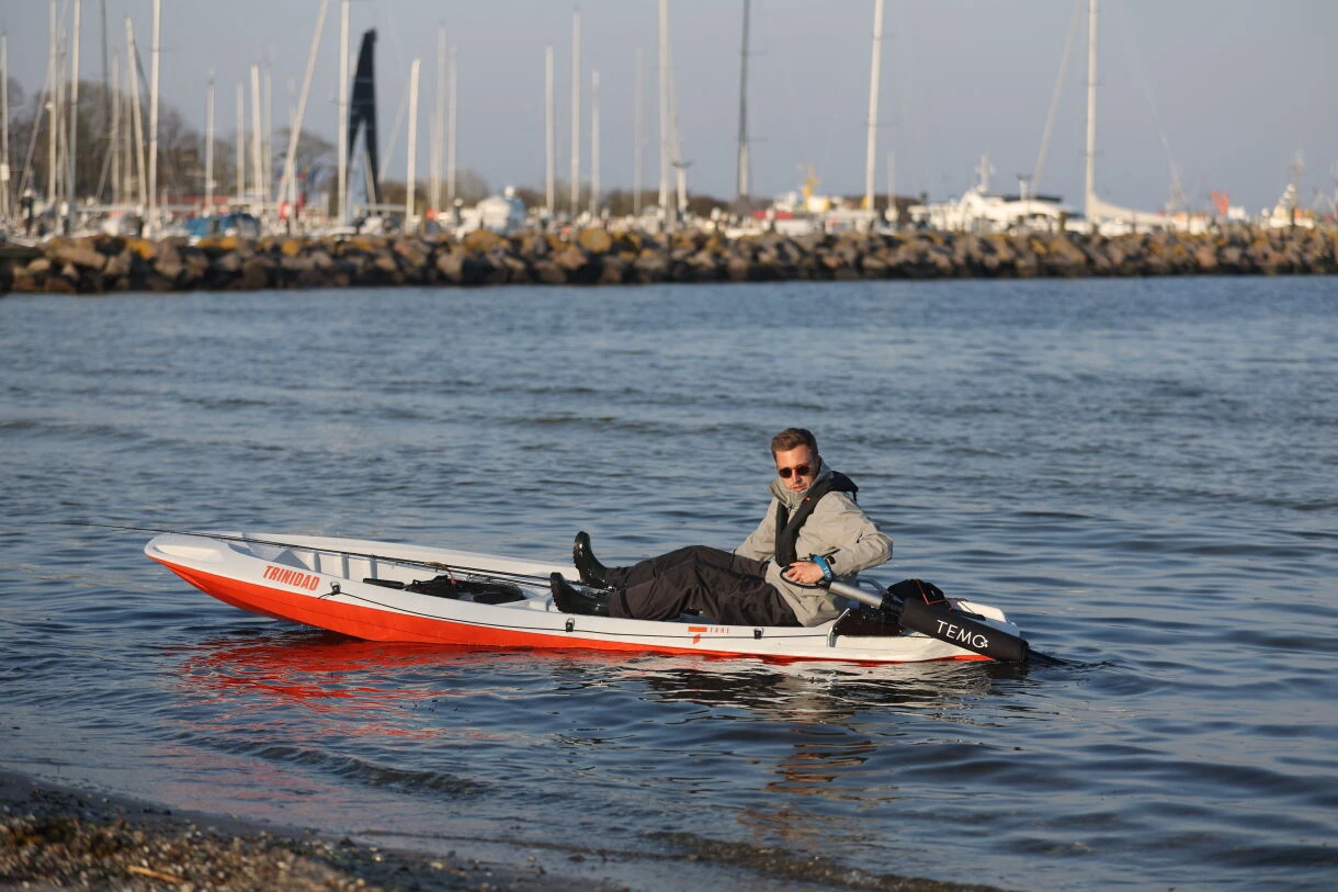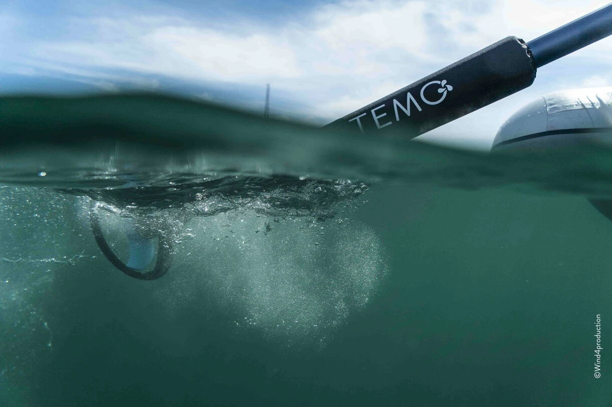 Verantwortungsbewusst, universell und leicht – die TEMO·450-Antriebslösung berücksichtigt die Bedürfnisse von Bootsfahrern und der Umwelt. Leicht und portable Mit einem Gewicht von weniger als 5 kg und einem einzigartigen Design, welches Motor, Akku und Steuereinheit vereint, ist TEMO·450 praktisch und ultrakompakt. Ob auf dem Fahrrad oder auf dem Boot, in seiner schützenden Tragetasche begleitet er Sie überall hin, ohne Sie zu belasten. MAGISCH! Der TEMO·450 ist extrem einfach und passt sich dank seiner Teleskoplänge (von 130 bis 170 cm) und seines Multipositions- AMBIDEXTRE-Griffs jedem Zweck an, sodass Sie sich in jeder Situation wohlfühlen und die Kontrolle behalten können Mit seinem einfachen Design, hinter dem sich fachmännische Technik verbirgt, erfüllt TEMO-450 das Wesentliche und ermöglicht es Ihnen, alle Ihre Manöver mit einer Hand oder sogar mit einem Finger zu bewältigen. Leistungsstark Mit seinem 450-W-Motor und dank eines optimierten Wirkungsgrads bietet TEMO-450 eine ANTRIEBSLEISTUNG von 200 W, mit der Sie Ihr Boot bis zu einer Strömung von 3 Knoten antreiben können. Mit seinen 20 cm Tiefgang kann man sich jedem Strand nähern und sein Beiboot „beachen“, ohne Gefahr zu laufen, es zu beschädigen. Keine komplizierte Befestigung oder Installation erforderlich. Mit bloßen Händen oder mit der Hilfe einer simplen Dolle (fest oder abnehmbar), Praktisch und ELEKTRISCH ! Mit TEMO·450 ist es unnötig die Batterie zum Aufladen herauszunehmen. Schließen Sie ihn direkt an eine 220V-, 12V- oder 24V-Steckdose an TEMO·450 ist nicht nur eine umweltfreundliche Lösung ohne direkte Emissionen, sondern wird auch in Frankreich, zwischen der Bretagne und den PAYS DE LA LOIRE, hergestellt. Merkmale des TEMO·450 1x TEMO (Motor) TEMO • 450